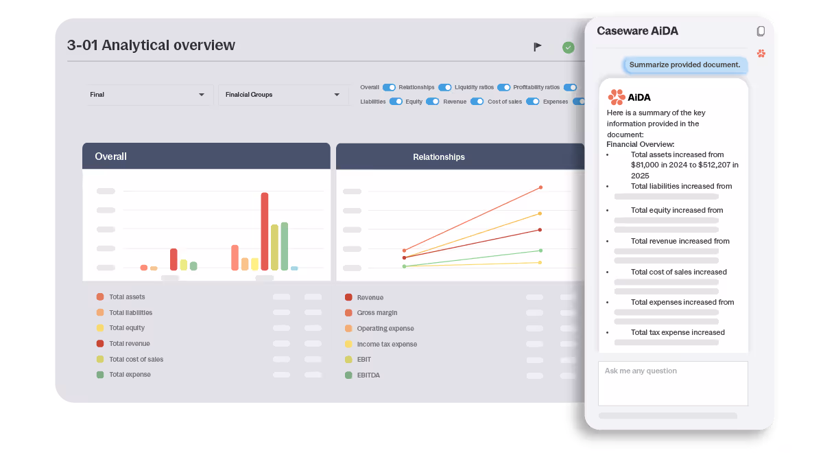 Purpose-built for assurance and accounting workflows, Caseware’s AI is designed to improve accuracy and efficiency.