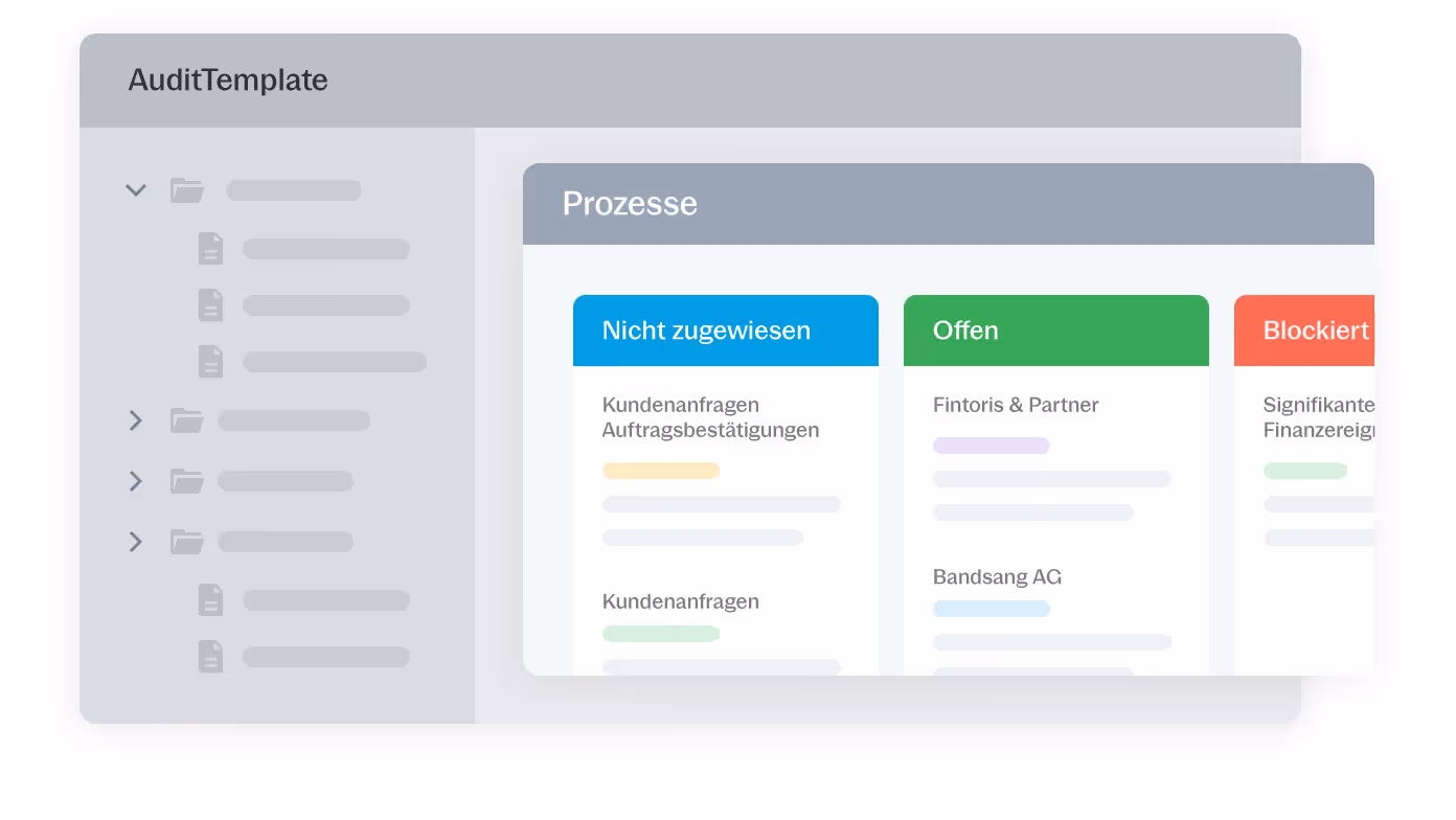 Das zentrale Dashboard zeigt den Prüfungsworkflow visuell an, führt durch Planung, Risikobeurteilung und Berichterstellung und unterstützt Teams bei der Prozesssteuerung.