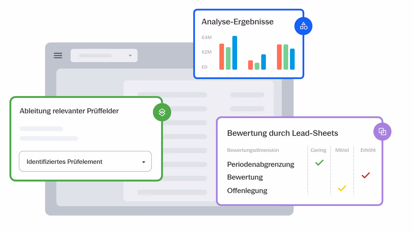 Finja führt automatisierte Daten- und Kontenanalysen durch und erstellt kontextsensitive Auswertungen und Lead-Sheets, die den Erstellungsprozess qualitativ vereinheitlichen.