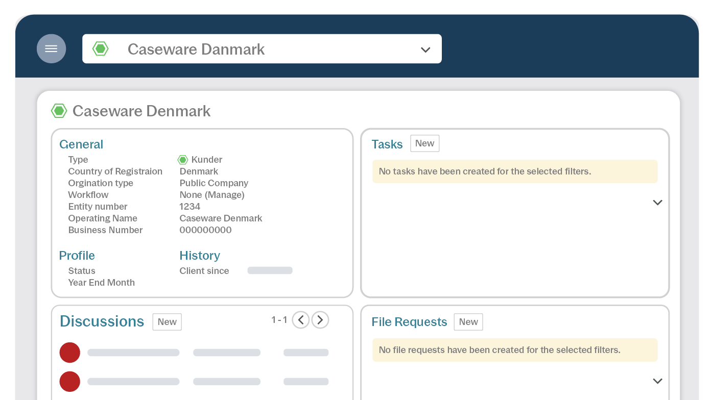 Caseware Cloud fremmer dit samarbejde med kunderne gennem nem og sikker deling af filer, kommunikation og udveksling af dokumenter. Centraliseret datalagring og sikkerhedskopier gør, at dine kunder kan stole på, at deres data er sikker hos dig.