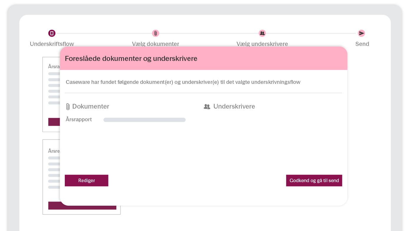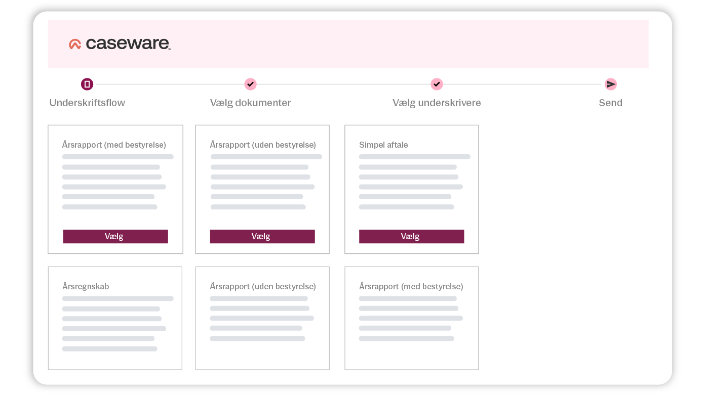Vores løsning er specifikt udviklet til alle brugere af Caseware for at sikre et effektivt underskriftsflow. Integrationen mellem Caseware og Penneo giver jer mulighed for at sende eksempelvis aftalebrev, årsrapporter eller protokoller til digital underskrift – direkte fra Caseware. Hurtigt, nemt og med minimal risiko for fejl.
