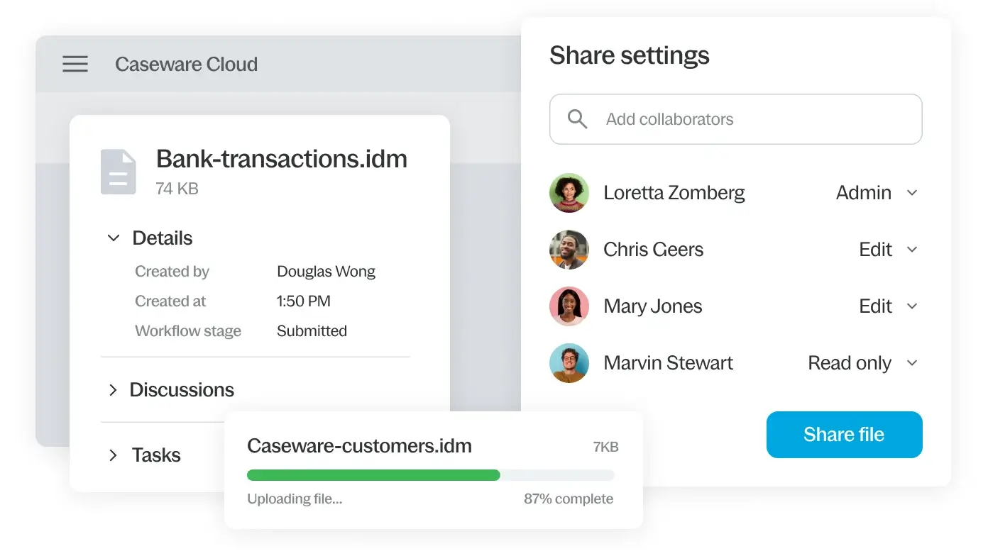 Haga clic en los datos extraídos de Excel para volver rápidamente al documento de origen. Revise las pruebas justificativas sin cambiar entre varias pantallas o archivos. Incorpore un flujo de trabajo estructurado, que también cuenta con aprobaciones y revisiones integradas, para realizar pruebas.