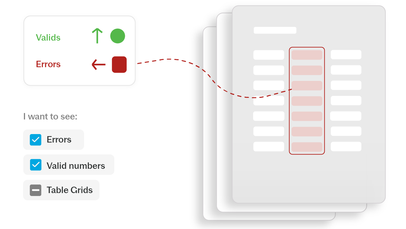 Convierta extractos bancarios, facturas y libros de contabilidad no estructurados en formatos tabulares ordenados. Dé formato a los datos extraídos para adaptarlos a sus plantillas de auditoría con una asignación de columnas personalizada. Detecte totales, valide cálculos y asegure la exactitud numérica.