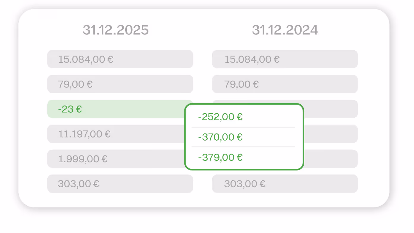 Automatisierte Systemtabellen gewährleisten Zahlen-Konsistenz.