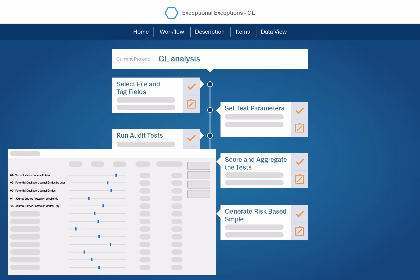 arrow_forwardAccess 100+ smart audit tests for faster, detailed analysis of the general ledger and important sub-ledgers to detect issues effortlessly.