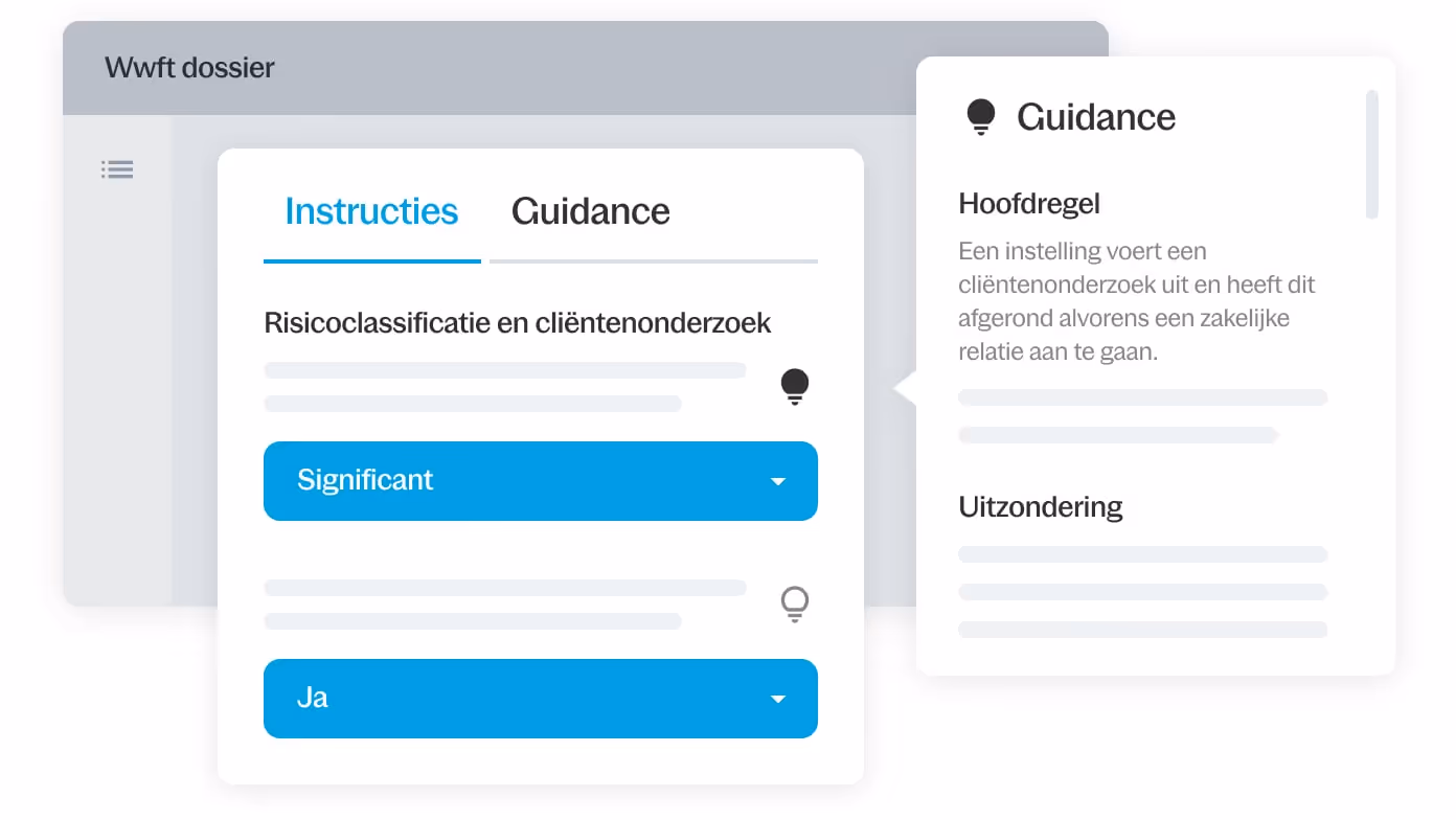 Begeleid je Wwft-cliëntenonderzoek met duidelijke instructies en guidance, registreer uitkomsten en onderbouwing en werk aantoonbaar volgens de richtlijnen.