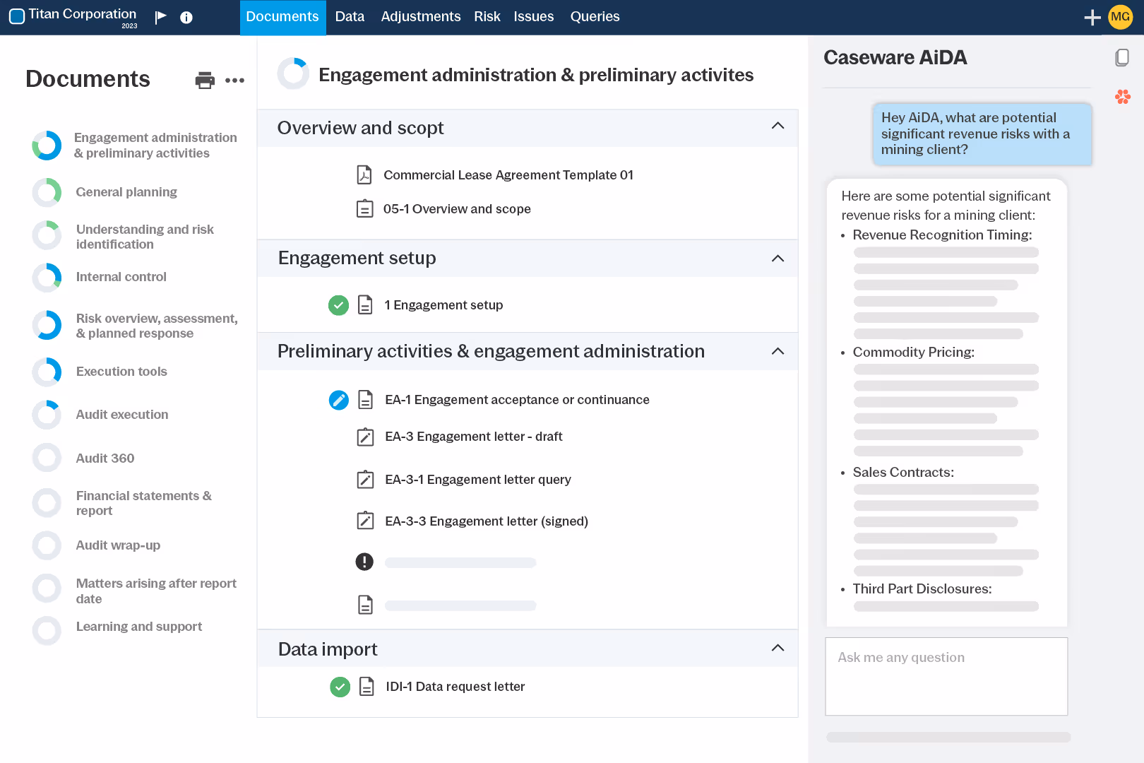 AI-powered digital assistant that provides in-context guidance and support across Caseware workflows.