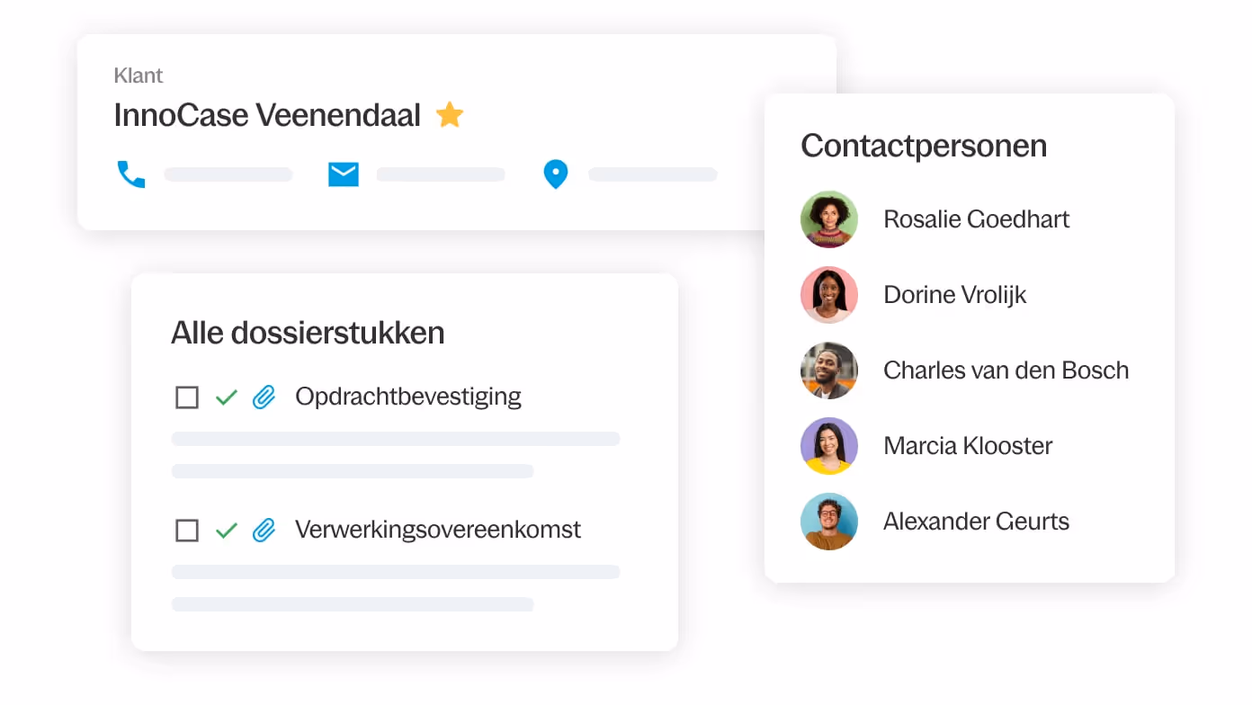 Alle klantinformatie en onderlinge verbanden staan overzichtelijk bij elkaar. Zo vind je direct wat je zoekt en werk je volgens de geldende wet- en regelgeving.
